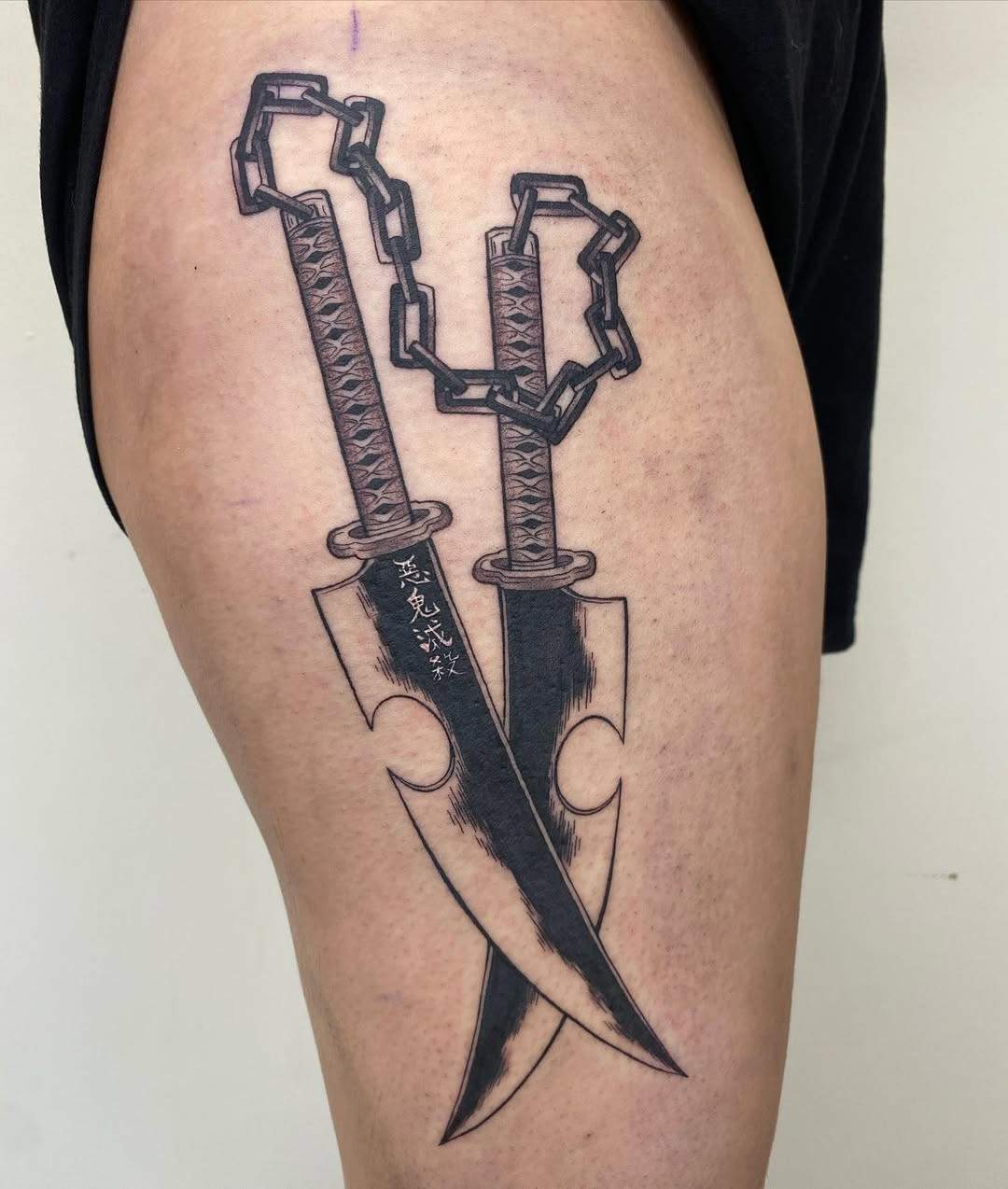 Demon Slayer Tattoo Ideas are great for fans of anime who value bravery, toughness, and the iconic figures in the series. These ink works usually contain Katana swords, flames, water, or lightning effects, and everyone’s most loved character symbols, such as Tanjiro, Nezuko, Zenitsu, and Inosuke. Demon Slayer Tattoo Ideas: Damage to the eye symbolizes protection and resilience, blood on the mouth refers to willingness and determination, a cut across the forehead means an emotional scar in inner balance.