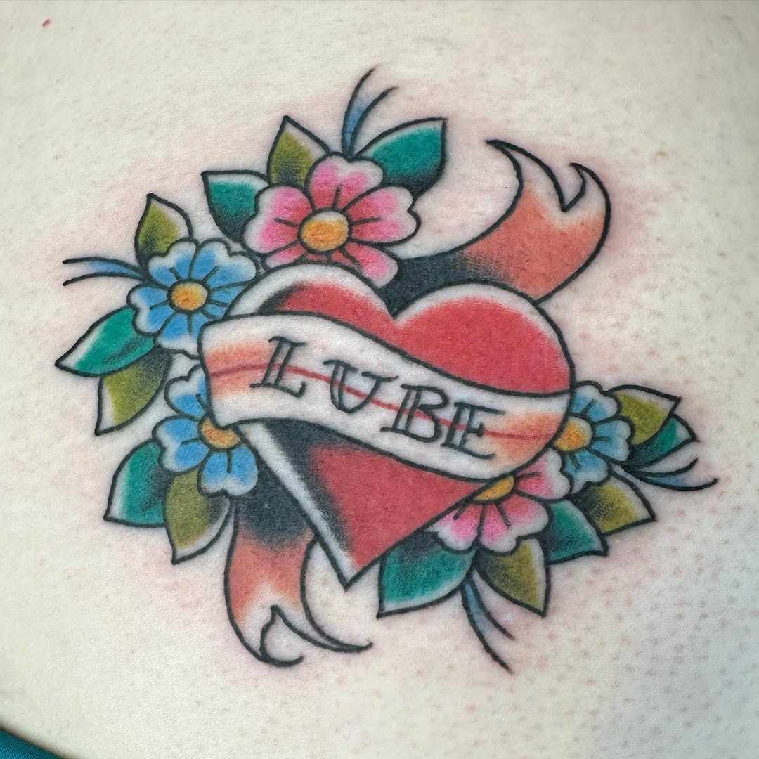 Benefits: Traditional flash tattoo, Customizable with names or words, Versatile.