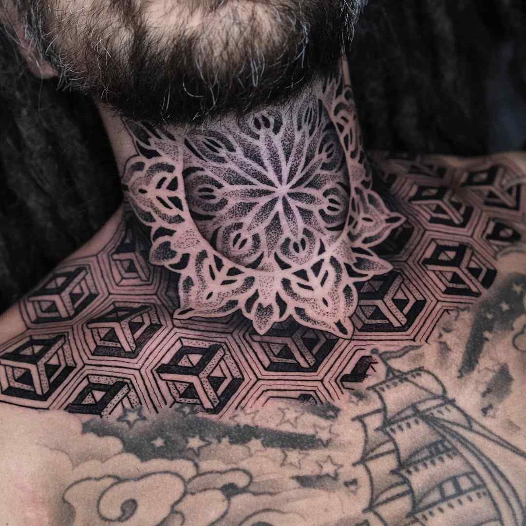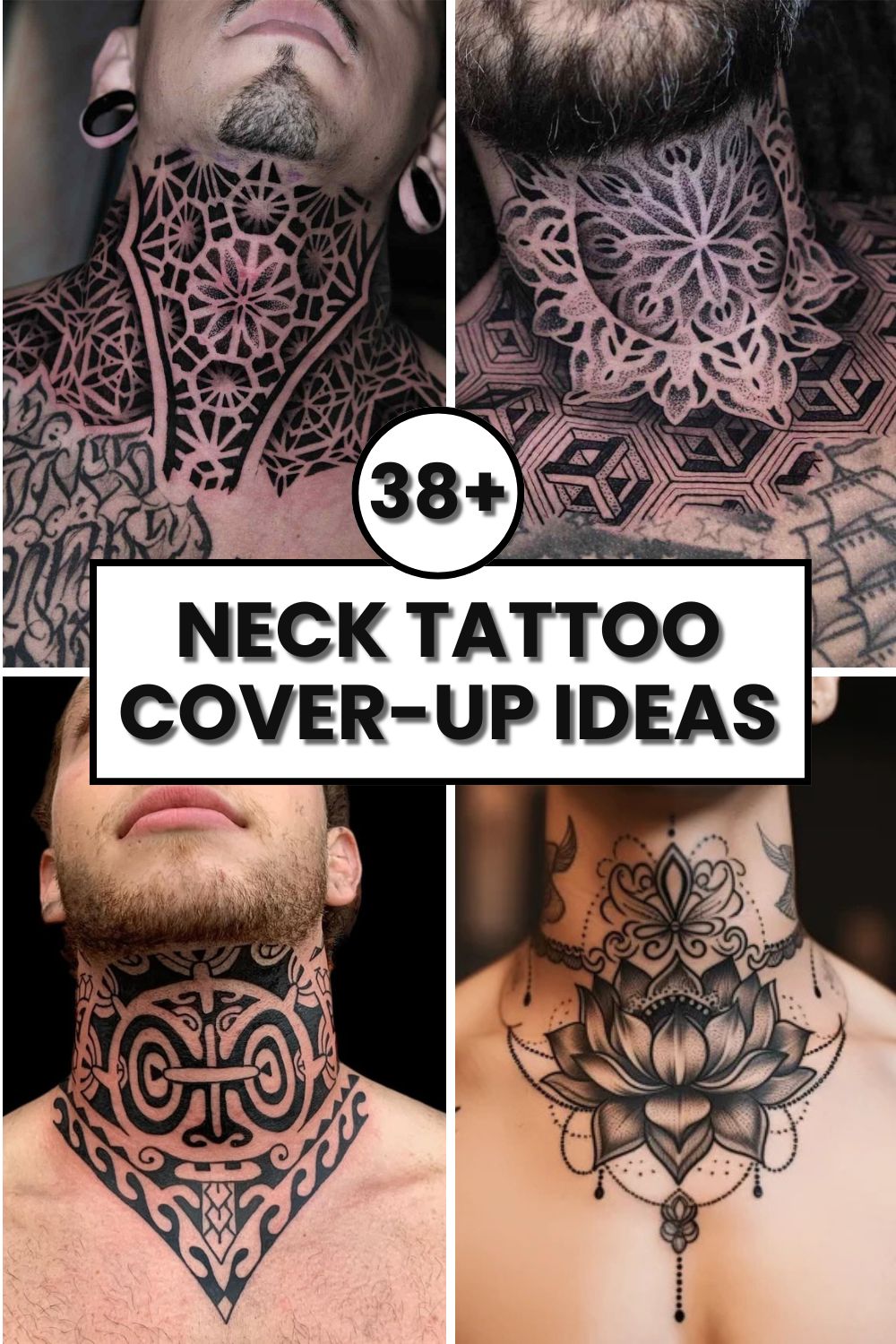Neck Tattoo Cover Up Ideas: Neat ways to cover or transform an old or uninspiring tattoo, while keeping your own sense of style! Neck As the neck area is not only visible but curved a bit, cover-up ink ideas for this part of the body must be considered carefully, looking and dark in shading. Neck tattoo cover-up ideas can go from flowers and geometric shapes to detailed mandalas or meaningful drawings.