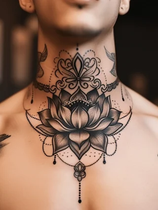 5. Neck Tattoo Cover-Up: Lotus Flower