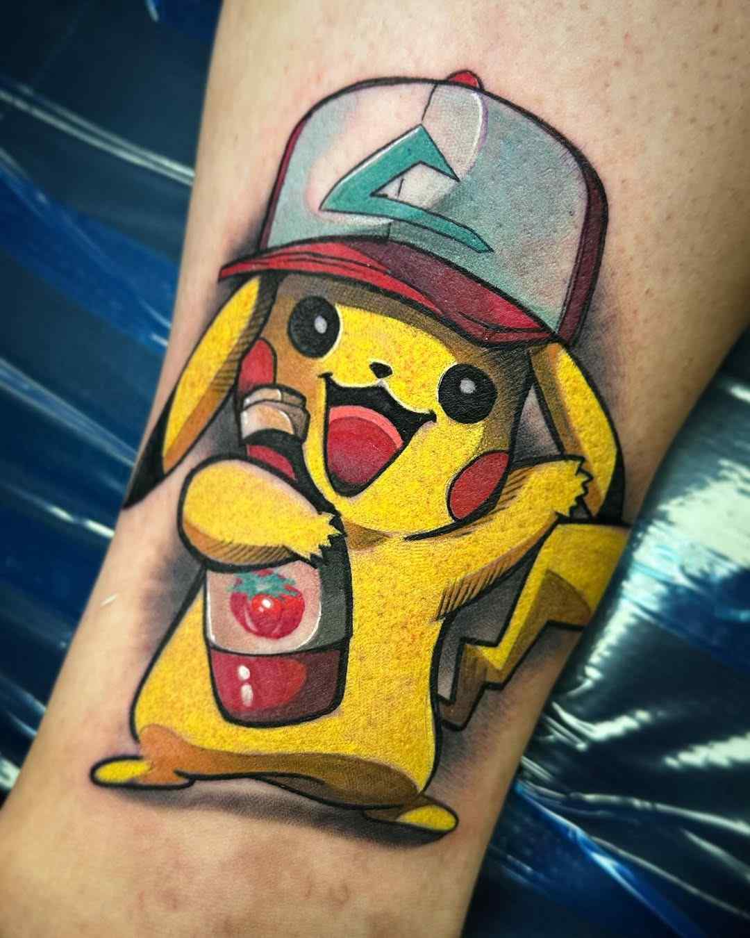 The placement can be flexible too — small designs go on wrists or ankles, while more extensive tattoos work on arms, thighs, backs, and so forth. A Pikachu tattoo symbolizes affinity to Pokémon and great virtues such as loyalty, happiness, and a never-give-up spirit.