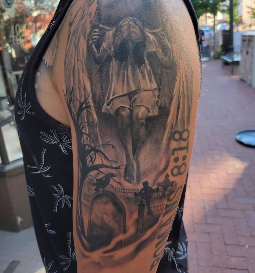 Tombstone Tattoo Ideas. There is a wide variety of TDF ideas with the different themes, which allows people to design a very personal, highly emotional, and quite commemorative tattoo in a durable and respectful ​‍​‌‍​‍‌​‍​‌‍​‍‌way.
