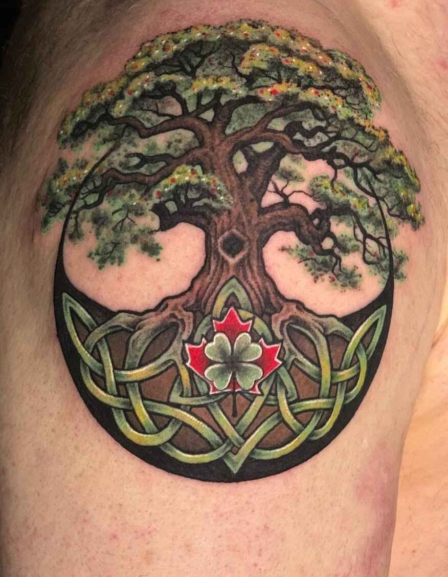 These are some flexible designs that roots, branches, and leaves could be merged into watercolor splashes. “Many people get this tattoo as a reminder that you need to fall to stand up,” the artist explained, “or they see it as a new beginning, life change, or spiritual connection. Placed on the back, arm, or thigh, Watercolor Tree of Life Tattoo Ideas are striking and have deep meaning.